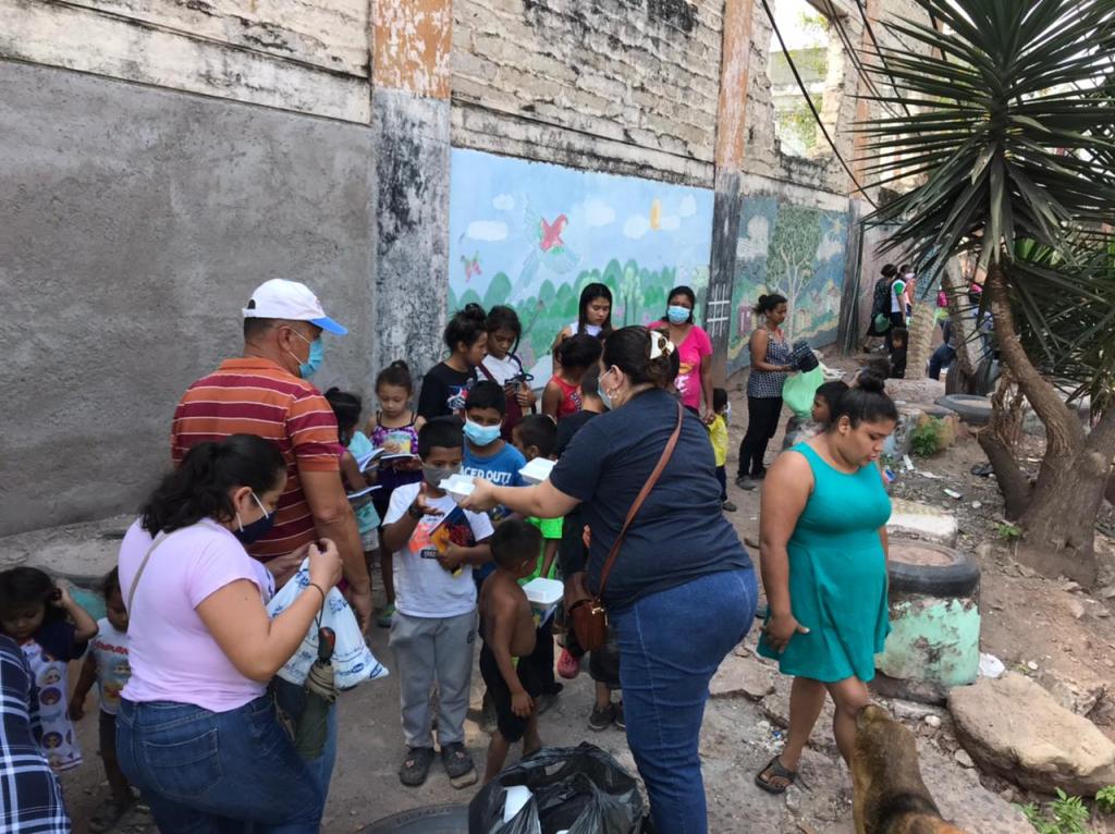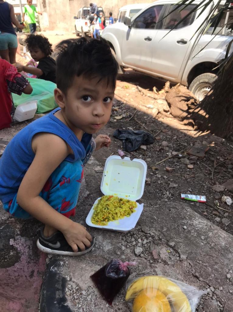 Al finalizar el servicio se les entregó la comida a 100 adultos y 70 platos para niños, así mismo, se les entregó donas, frutas, ropa y zapatos.