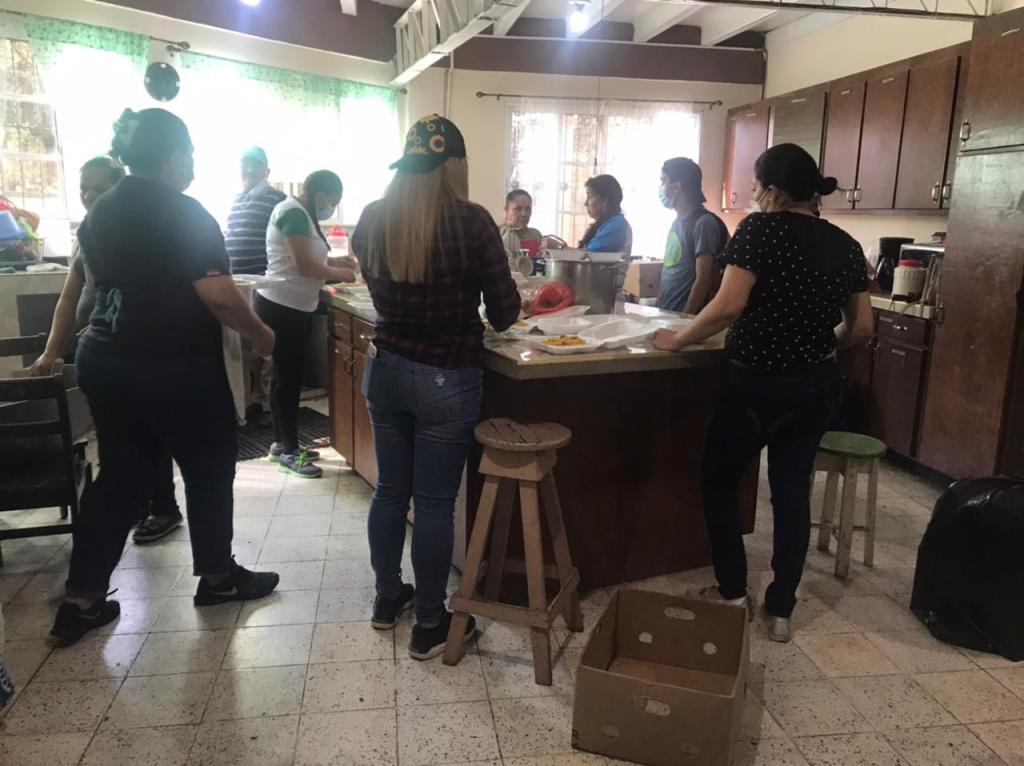 El Ministerio de Damas se dispuso en cocinar desde tempranas horas para llevar alimento a las familias.