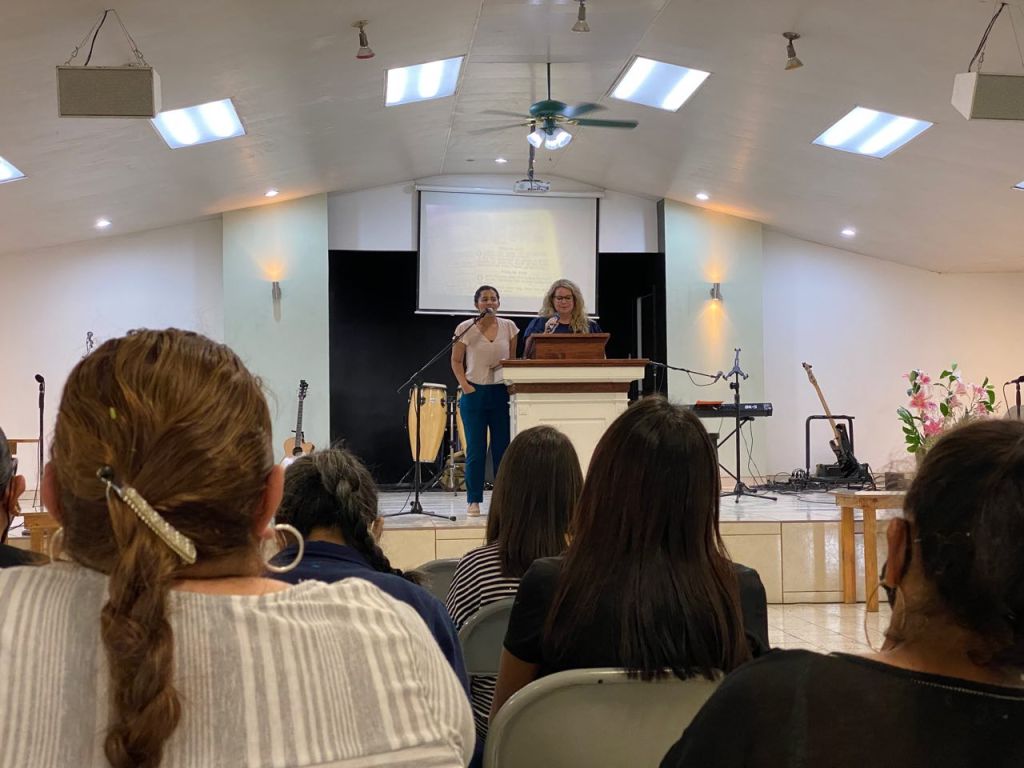 Durante la tarde del martes 21, aparte del tiempo de evangelismo en la zona, se realizó la Conferencia de Mujeres “Transformadas” en la Iglesia Bautista Salem, esta fue la primera de dos conferencias de mujeres que se impartieron esa semana. Los temas que se trataron fueron: Transformadas para adorar, transformadas para servir y transformadas para florecer como hijas de Dios. Asimismo se compartieron 3 testimonios de parte de las hermanas que hablaban sobre cómo Dios ha cambiado sus vidas y les ha ayudado a cumplir de mejor forma todo aquello para lo cual fueron creadas. Unas 15 mujeres asistieron esa tarde.
